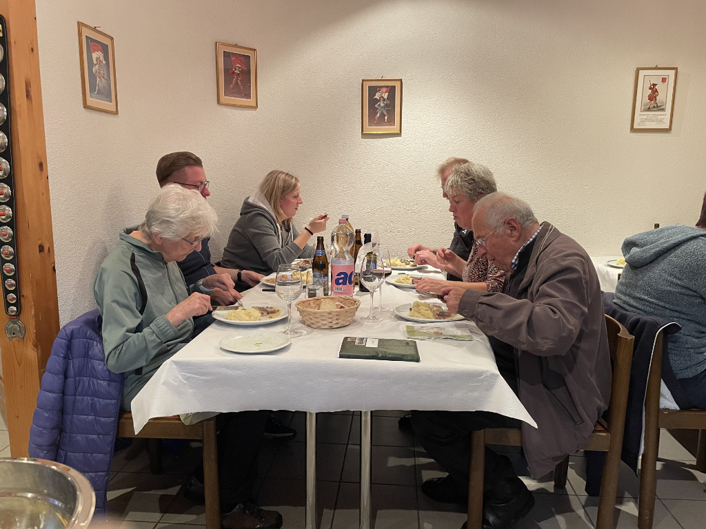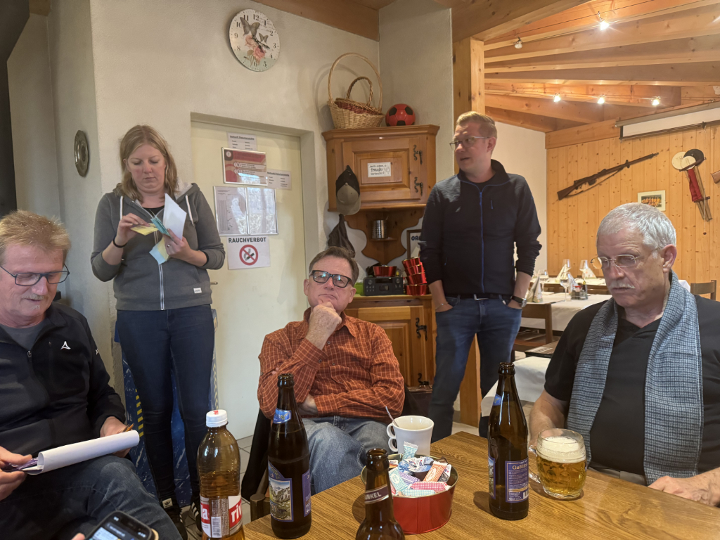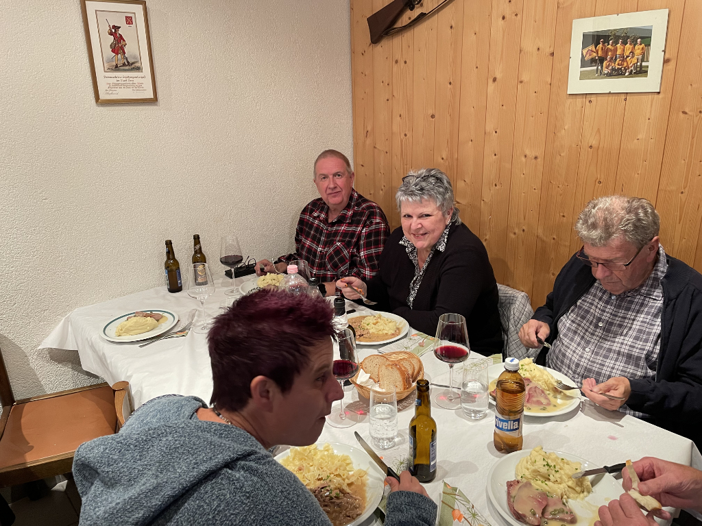 Abends wurde dann beim Saisonabschlussessen geschlemmt: Zur Auswahl standen Zunge mit Kartoffelstock oder Geschnetzeltes, köstlich vom Wirteteam zubereitet. In entspannter Atmosphäre liessen wir den Tag gemütlich ausklingen und blickten auf einen gelungenen Saisonabschluss zurück.