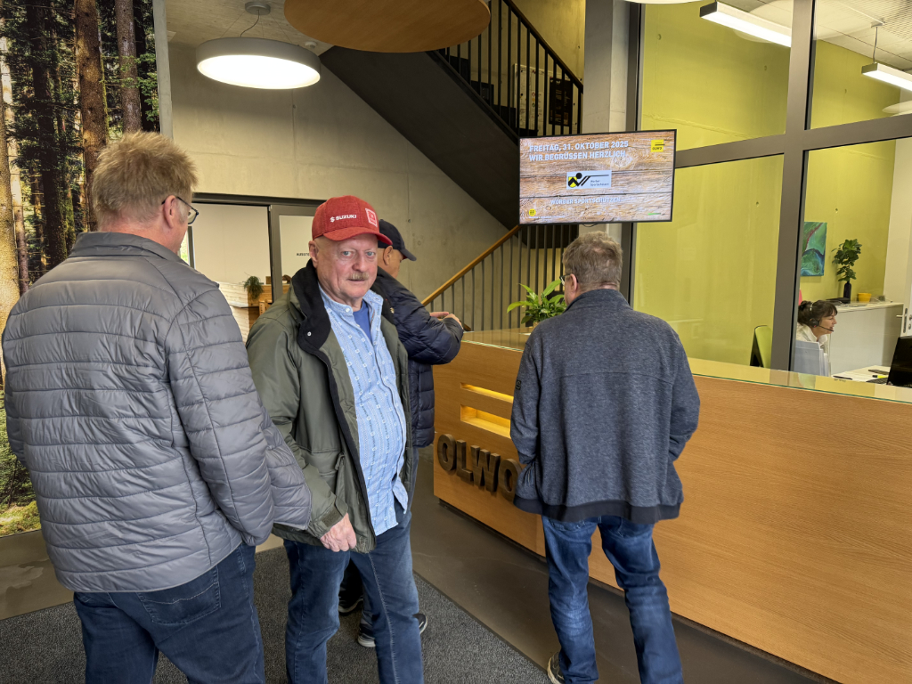 Man traf sich sich am 31. Oktober frühmorgens im Restaurant Hirschen in Worb bei Kaffee und Gipfeli. Gestärkt und in bester Laune ging es danach zur OLWO, der bekannten Holzverarbeitungsfirma in Worb. Dort nahm uns Markus Lädrach höchstpersönlich unter seine Fittiche und führte uns durch die verschiedenen Abteilungen.